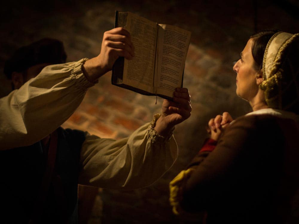Wit­ten­berg 1533. Katha­ri­na Luther hat wie immer vie­le hung­ri­ge Mäu­ler zu stop­fen, als ein uner­war­te­ter Gast an ihre Tür klopft: Micha­el Sti­fel, Pfar­rer aus Loch­au, ist auf der Flucht vor sei­ner Gemein­de und bit­tet um Asyl im Hau­se sei­nes gro­ßen För­de­rers. Doch was hat Sti­fel ange­stellt, dass er als Hir­te nun von sei­nen Scha­fen gejagt wird? Im Lau­fe des Abends stellt sich her­aus, dass dem Geist­li­chen aus­ge­rech­net sei­ne gro­ße Lei­den­schaft – die Mathe­ma­tik – zum Ver­häng­nis gewor­den ist. Sti­fel, dem mit Hil­fe aben­teu­er­li­cher Glei­chun­gen schon vor Jah­ren der Nach­weis gelun­gen war, dass der Papst Leo X. kein Ande­rer als der Satan sel­ber sei, hat in einem zwei­ten Schritt noch viel Unglaub­li­che­res zu Tage geför­dert: den Zeit­punkt für das Ende der Welt! Und damit macht er nun nicht nur den Loch­au­ern, son­dern auch Frau Luther und ihren Gäs­ten Angst. Ist heu­te ein Tag wie jeder ande­re? Oder wird an der fest­li­chen Tafel tat­säch­lich das letz­te Abend­mahl ser­viert? Man wird hören, sehen und schmecken …